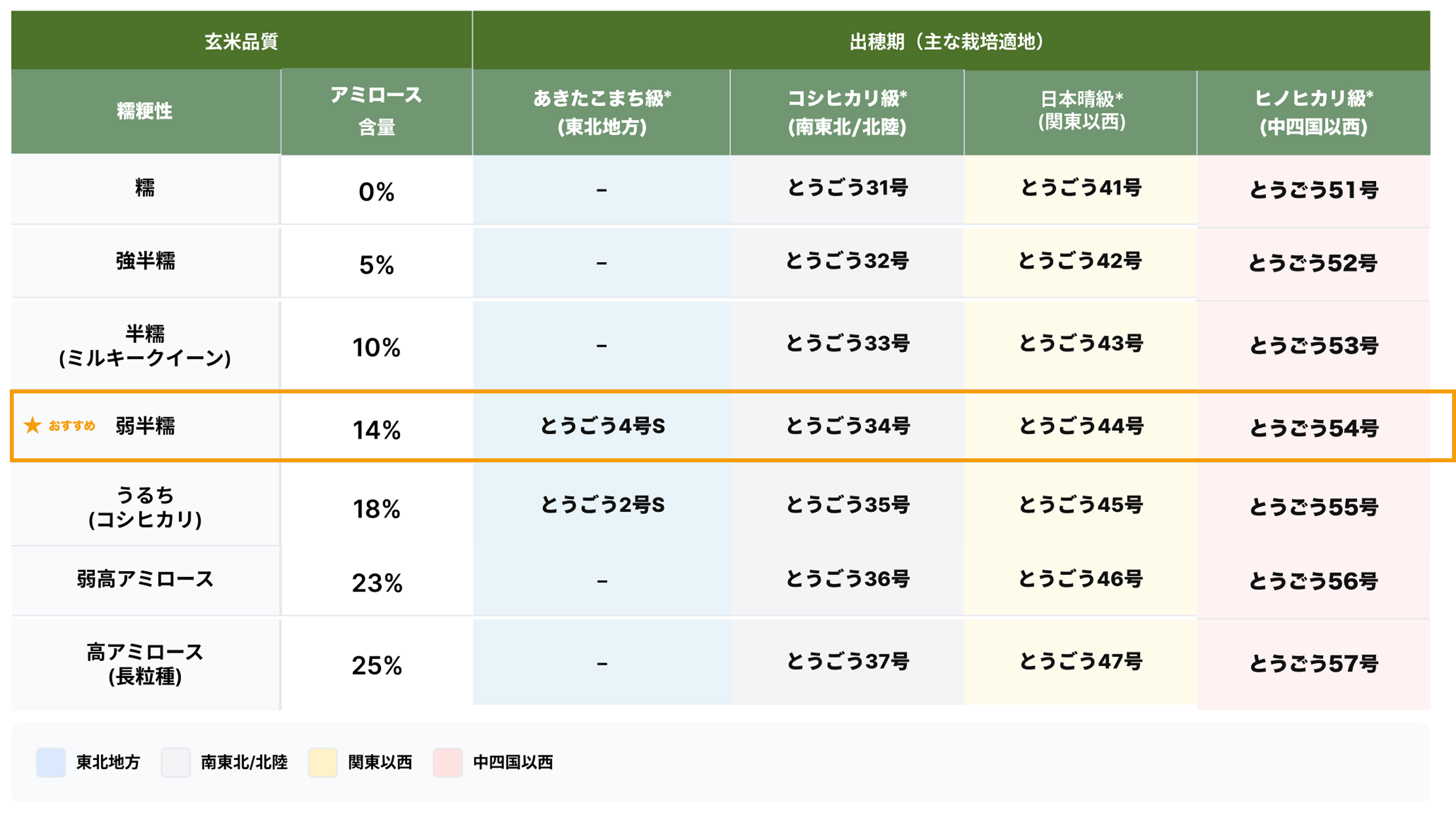 シリーズ内に、糯米から高アミロースまでをご用意しました。